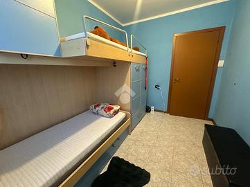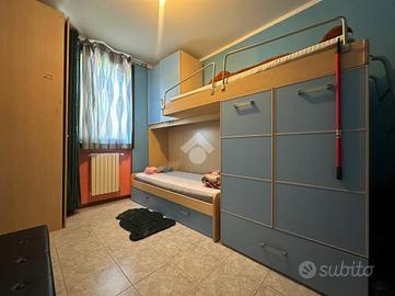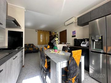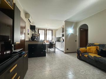 L'appartamento, di 72 mq, si trova al piano terra del complesso ed è composto da: soggiorno open space con cucina, disimpegno, due camere da letto e bagno con vasca. Tramite la scala interna posta nel disimpegno si accede al piano interrato di ulteriori 64 mq, suddivisa in ampio cantinato rifinito e locale lavanderia.