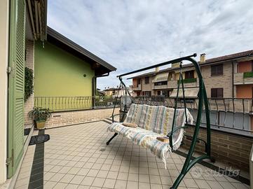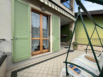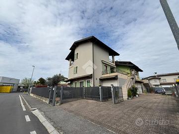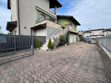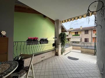 RIVOLTA D'ADDA: In tranquillo contesto residenziale edificato nel 2005, proponiamo in vendita appartamento di tre locali e servizi con box e area esterna privata. L'appartamento si trova al primo piano della palazzina ed ha ingresso indipendente. L'ingresso si raggiunge tramite la scala privata esterna. L'appartamento si compone di soggiorno con angolo cottura, disimpegno, due camere da letto e bagno con vasca. Il fiore all'occhiello di questa soluzione è l'ampia area esterna, che soddisfa tutti i gusti: la proprietà dispone di loggia coperta di 8 mq, terrazzo di 15 mq e cortile privato al piano terra di 100 mq. La proprietà è completata da box singolo al piano terra, anch'esso con ingresso indipendente. I serramenti sono in legno e doppio vetro con persiane in legno; i pavimenti sono in ceramica, ad eccezione delle camere da letto rifinite in parquet. L'appartamento dispone di riscaldamento autonomo, aria condizionata, porta blindata, tenda da sole, zanzariere, predisposizione canna fumaria e predisposizione impianto d'allarme. Minime spese condominiali. La classe energetica è in fase di aggiornamento.