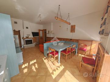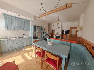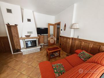 Appena entrati dalla porta d'ingresso veniamo accolti dall'ampio soggiorno, dotato di angolo cottura e caminetto a legna.