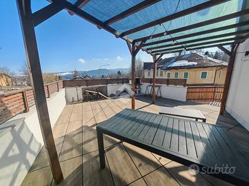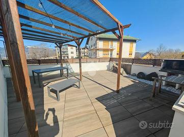 Sempre dal soggiorno si esce nel terrazzino e una volta percorso per intero si arriva al grande terrazzo panoramico di 30 mq perfetto per un barbeque in famiglia o un aperitivo tra amici.