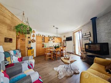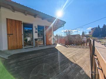 Treschè Conca. In posizione panoramica, soleggiata e a breve distanza dal centro, proponiamo appartamento al piano terra ristrutturato e inserito in sole cinque unità. La soluzione è stata sapientamente arredata in stile montano ed è caratterizzata da ottimi spazi e luminosità data dalle ampie porte finestre. Appena entrati veniamo accolti da un atrio di ingresso che ci accompagna alla spaziosa zona giorno impreziosita da stufa a legna sospesa, pareti in legno e sasso a vista. Dalla zona living è possibile accedere al terrazzo esclusivo e semi-perimetrale. Accedendo al corridoio poco più avanti giungiamo alla zona notte composta da due camere matrimoniali e uno spazioso bagno. La proprietà comprende un box auto privato e giardino condominiale. Nessun amministratore.