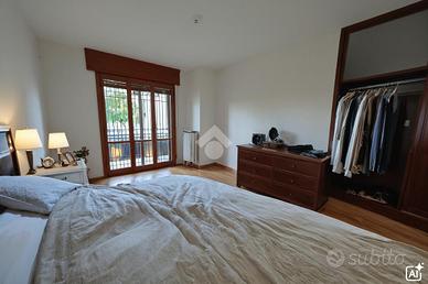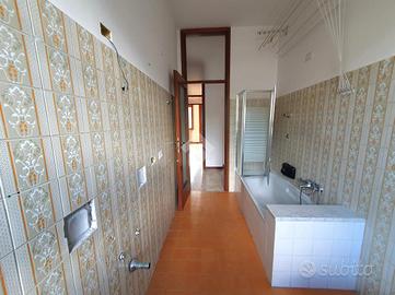 Tornando nel disimpegno, sulla destra troviamo un corridoio che porta: alla prima camera matrimoniale utilizzabile come cameretta e alla camera padronale con porta finestra che consente l'accesso al secondo balcone, con piacevole affaccio interno. Completa la zona notte, un ampio ripostiglio cieco ed il bagno finestrato con vasca; la pavimentazione è in ceramica così anche sulle pareti.