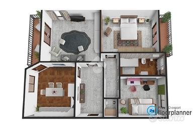 L'appartamento risulta essere così composto: ingresso in disimpegno che ci permette di accedere ai vari ambienti della casa; sull' esposizione sinistra, troviamo la cucina abitabile ampia e luminosa, personalizzabile con varie soluzioni d'arredo, inoltre, grazie alle porte finestre del quale è dotato possiamo accedere al primo balcone della casa. Sempre sulla sinistra troviamo la zona soggiorno di ottime dimensioni con porta finestra con tapparella elettrica che si collega al balcone della cucina.