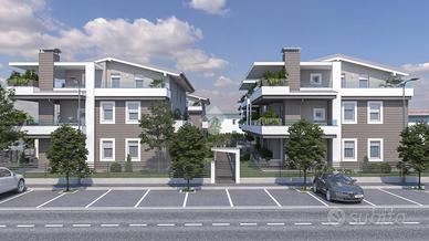 Un progetto composto da 24 unità, ripartite in 4 contesti da 6 appartamenti ciascuno, suddivisi in piano terra, primo e attico, dove l'architettura crea una perfetta armonia tra interni ed esterni.