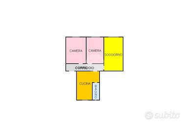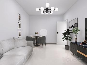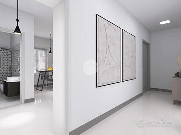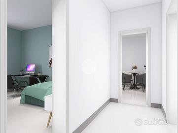 L'immobile è così composto: ingresso, soggiorno, cucina abitabile, camera da letto matrimoniale, cameretta e servizio finestrato; la soluzione offre la possibilità di personalizzazione degli ambienti grazie alla presenza di tramezzi