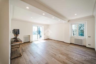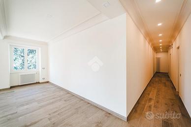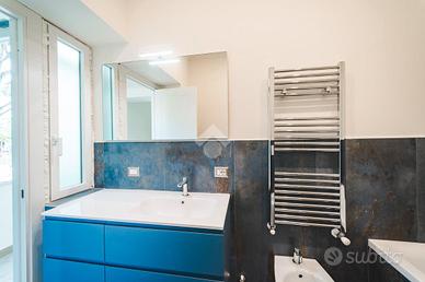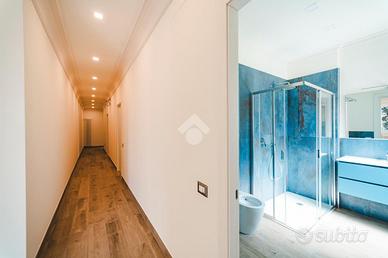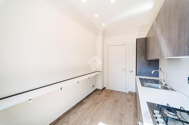 Il riscaldamento è centralizzato e l'immobile si completa di aria condizionata; la porta è blindata e le finestre sono in doppi vetri. I soffitti sono alti e risaltano la naturale luminosità dell'appartamento.