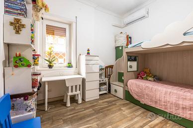 Nel cuore del quartiere Aurelio a Roma, è disponibile un appartamento in vendita che offre una comoda soluzione abitativa. Situato al secondo piano l'immobile si estende su una superficie di 81 mq commerciali . L'appartamento ha una buona disposizione interna e comprende tre locali ben distribuiti, ideali per chi cerca un ambiente funzionale e accogliente. La zona giorno è luminosa e si presta a diverse soluzioni di arredo con cucina a vista ed ha l'accesso alla balconata di 17 mq che prende tutti gli ambienti; la camera matrimoniale è dotata di bagno interno e cabina armadio, la camera singola è molto funzionale e c'è un secondo bagno cieco. Completano la proprietà un ripostiglio e due comodi soppalchi. L'appartamento si presenta in buone condizioni interne con infissi in doppio vetro, grate e gres in tutti gli ambienti . Si tratta di una soluzione comoda che consente di raggiungere facilmente i principali servizi e i mezzi di trasporto pubblico, rendendo questo appartamento una scelta pratica per chi desidera vivere in una delle aree più servite della città. Perfetto per famiglie o coppie che cercano una casa in una zona ben collegata e ricca di comodità. Riscaldamento centralizzato