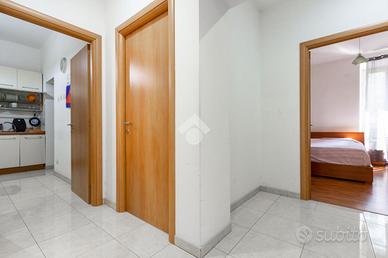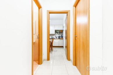 L'appartamento internamente è composto da un ingresso che conduce ai vari ambienti, sulla destra troviamo il soggiorno e le tre camere da letto, frontalmente la zona giorno con angolo cottura con annesso uno spazioso ripostiglio e sulla sinistra il bagno.