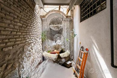 I pavimenti, ad oggi protetti da un parquet e dalla moquette, sono in cementine esagonali colorate, tipiche delle dimore del centro storico tra il '700 e l'800.