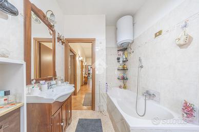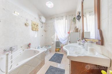 Il bagno è finestrato e completo di vasca, mentre il locale lavanderia, anch'esso dotato di finestra, nasce come cucina separata: gli attacchi originali sono ancora presenti, consentendo a chi lo desidera di ripristinarla con facilità.