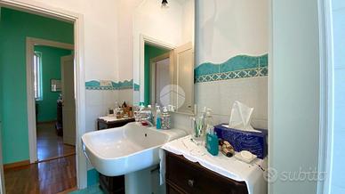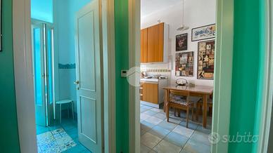 procedendo troviamo un corridoio che porta l'accesso alle varie stanze: camera matrimoniale con accanto un ripostiglio, mentre sul lato opposto troviamo una seconda camera (attualmente adibita a studio), cucina abitabile.