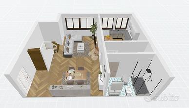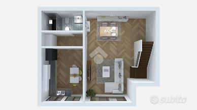 La soluzione è composta al settimo piano da zona giorno, con sala, cucina abitabile e bagno.