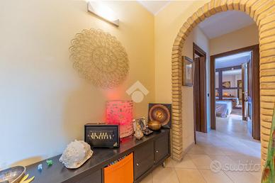 Completano la proprietà un posto auto scoperto all'interno del complesso e dotazioni moderne quali: infissi in legno con doppio vetro, persiane blindate, porta blindata e impianto di climatizzazione.