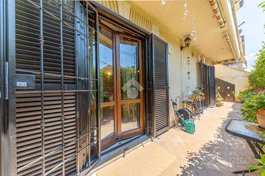 Esternamente, la proprietà dispone di una corte pavimentata ad uso esclusivo, perfetta per creare un angolo relax o per essere attrezzata con tavolo e sedute da esterno.