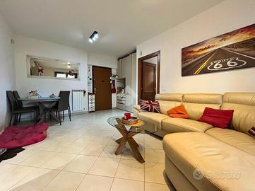 In un contesto residenziale tranquillo e ben curato, proponiamo in vendita un appartamento trilocale al piano terra, caratterizzato da ambienti funzionali e ottime finiture. L'ingresso si apre direttamente sulla zona giorno, composta da un ampio salone e da una cucina separata e abitabile. La pavimentazione in gres porcellanato chiaro dona luminosità e continuità agli spazi. La zona notte, distinta da un elegante parquet nei toni del miele, è composta da una camera da letto matrimoniale e da una cameretta, entrambe con porta finestra che permette l'accesso diretto al giardino privato.