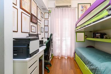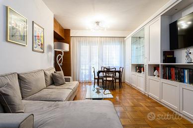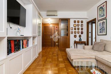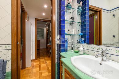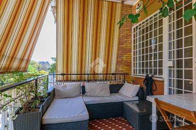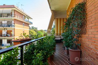 Lo Studio Bravetta S.r.l. propone in vendita, in un contesto esclusivo e ricercato del quartiere, precisamente in Via Raffaele Fabretti, un elegante trilocale situato al secondo piano di una palazzina in cortina servita da ascensore. L'appartamento è composto da: accogliente ingresso, un ampio salone, cucina abitabile in muratura con elementi in legno artigianale e pratico ripostiglio, camera da letto padronale, seconda camera da letto, doppi servizi entrambi con finestra (di cui uno en suite) e un'ampia balconata perimetrale. L'immobile è stato finemente ristrutturato con materiali di alta qualità e grande attenzione ai dettagli: nella zona giorno troviamo un raffinato parquet artigianale a disegno geometrico, mentre nella zona notte un parquet lineare, aria condizionata, antifurto e filodiffusione in tutti gli ambienti. Gli infissi sono in pvc doppio vetro rivestiti in legno, dotati di serrande elettriche e grate di sicurezza. Completano l'atmosfera eleganti boiserie in legno, che conferiscono calore e personalità agli ambienti. La spaziosa balconata che circonda l'immobile, è ideale per momenti di relax o cene all'aperto durante le serate estive. La posizione è particolarmente privilegiata: immersa nel verde, ma ben collegata e prossima a tutti i principali servizi e collegamenti. Completano la proprietà una comoda cantina e un posto auto coperto all'interno dell'autorimessa condominiale. Perché scegliere questa soluzione? - Contesto esclusivo; - Ristrutturazione; - Spazio esterno; - Tripla esposizione; - Cantina e Posto auto.