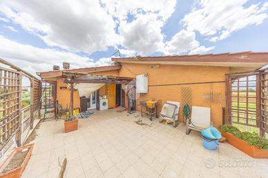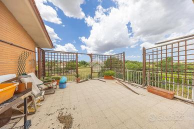 La vera perla di questa casa è il terrazzo vivibile, spazioso e riservato, da cui si gode una vista panoramica sul verde circostante, ideale per pranzi all'aperto, momenti di relax o semplicemente per respirare un po' di tranquillità lontano dal caos cittadino.