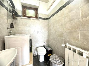 La zona notte è sapientemente organizzata in camera matrimoniale luminosa, cameretta versatile ideale come studio o stanza per bambini, e due servizi entrambi finestrati completi e ben rifiniti per garantire comfort e indipendenza. All'interno dell'abitazione è inoltre presente uno stanzino adibito a lavanderia, pratico e funzionale per le esigenze quotidiane. A completamento della proprietà, al piano seminterrato, troviamo un comodo posto auto coperto e una cantina, perfetti per autovettura e deposito.