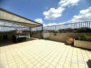 Varcando la porta d'ingresso si accede a un ambiente living raffinato, con soggiorno e cucina a vista che si aprono direttamente su un ampio terrazzo privato: lo spazio perfetto per pranzi all'aperto, momenti di relax e convivialità.