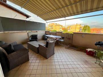 APPARTAMENTO BILIVELLO CON TERRAZZO E BOX - ZONA BORGHESIANA In una tranquilla traversa di via Borghesiana, all'interno di un contesto residenziale curato e caratterizzato da costruzioni recenti, proponiamo in vendita un appartamento su due livelli in ottimo stato, situato al primo piano di una palazzina edificata nel 2006. L'immobile gode di una posizione strategica, a soli 600 metri dalla fermata Metro C 'Borghesiana', garantendo un collegamento rapido e comodo con il centro città, pur mantenendo la tranquillità tipica delle zone residenziali. Composizione interna: * Primo livello: soggiorno con angolo cottura, camera matrimoniale, bagno finestrato, terrazzo abitabile ideale per pranzi e cene all'aperto e un secondo balcone; * Secondo livello (mansardato): ampia stanza con bagno privato, perfetta come seconda camera, come studio o zona relax.Caratteristiche aggiuntive: * Box auto singolo di proprietà incluso nel prezzo; * Nessuna spesa condominiale.Soluzione ideale per giovani coppie, famiglie o per chi desidera un immobile pronto da abitare, in una zona servita ma riservata. Contattaci per maggiori informazioni o per fissare una visita!