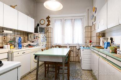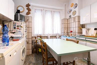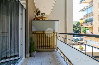 Gli ambienti, caratterizzati da soffitti alti (circa 3.20m) e ampie finestre, garantiscono una luminosità naturale. L'immobile si compone di ampio ingresso con finestra, corridoio, soggiorno, ampia camera matrimoniale con accesso sul primo balcone, cameretta con accesso sul secondo balcone, cucina abitabile, ampio bagno con vasca e finestra, ripostiglio con finestra. I locali ben distribuiti, ideali per chi cerca una soluzione abitativa funzionale e accogliente. La disposizione interna è perfetta per una famiglia o per chi desidera uno spazio aggiuntivo per lo studio o il lavoro da casa. Il riscaldamento è centralizzato con valvole termostatiche.