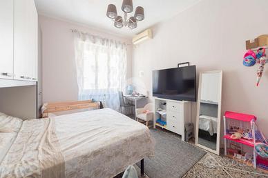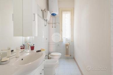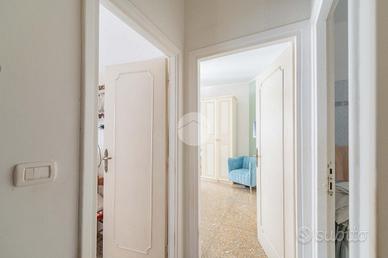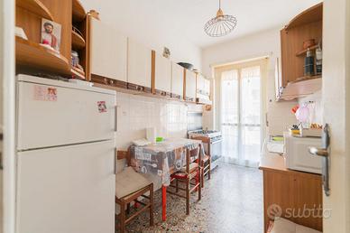 Internamente, l'immobile è composto da ingresso con finestra, ampio e luminoso soggiorno con accesso al balcone, due camere matrimoniali, cucina abitabile con uscita sullo stesso spazio esterno del soggiorno, bagno completo con vasca e finestra e, un capiente ripostiglio, anch'esso finestrato.