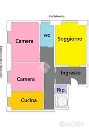 In via Vetulonia, adiacente mura latine, proponiamo in vendita un appartamento in nuda proprietà di 90 mq situato al piano rialzato di un edificio con ascensore, costruito nel 1950. L'immobile è composto da soggiorno, cucina, bagno, camera da letto e un'altra stanza versatile, ideali per ospitare uno studio o una seconda camera da letto. Completa la proprietà un piccolo e pratico ripostiglio. L'appartamento ha due affacci, uno su strada e l'altro sul distacco con l'edificio accanto offrendo così un ambiente silenzioso.