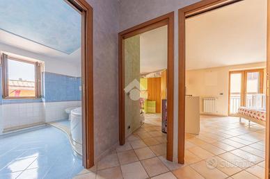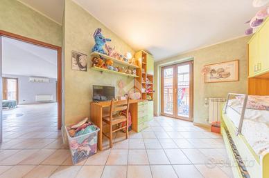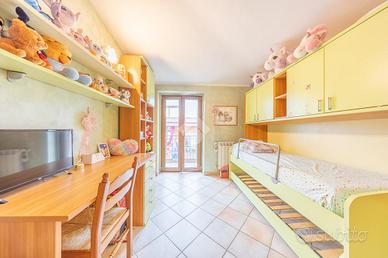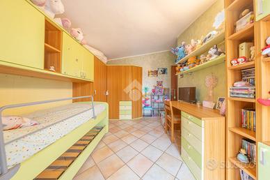 La zona notte è ben distribuita e accogliente: un comodo ripostiglio, una camera matrimoniale con uscita sul balcone, una cameretta anch'essa con accesso diretto all'esterno, e un bagno finestrato con vasca, ideale per chi ama concedersi un po' di relax.