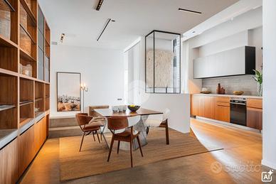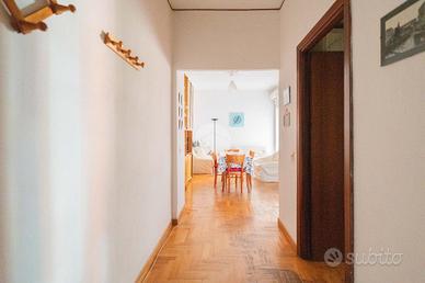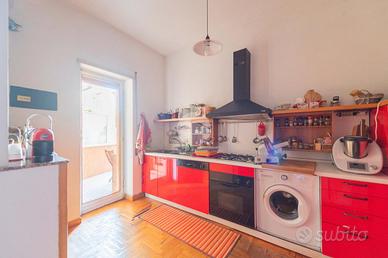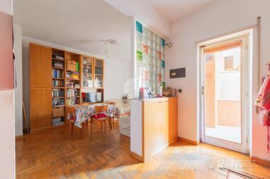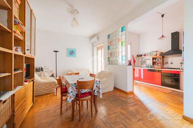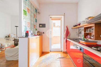 Peculiarità della soluzione sono: la doppia esposizione Est- Ovest che garantisce un'efficiente areazione, la pianta duttile che permette di adattare gli spazi alle proprie esigenze e la strategica e centrale posizione che ci permette di beneficiare dei vicini servizi di collegamento per visitare il resto della capitale e di usufruire di tutte le attività commerciali presenti in zona.
