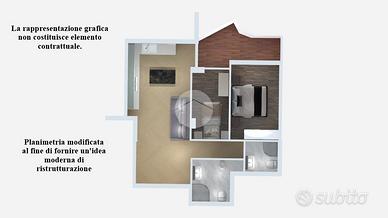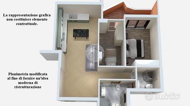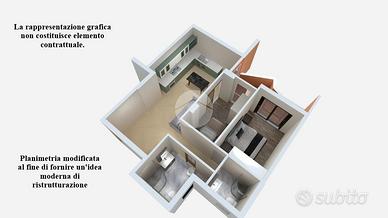 L'immobile internamente è composto da ampio ingresso open-space su accogliente ed armonioso soggiorno con comoda cucina a vista, ambiente che presenta due porta finestra che permettono l'uscita sul balcone che si affaccia sul verdeggiante e curato cortile condominiale esposto a Ovest, una regolare e comoda camera da letto matrimoniale sempre con uscita sul balcone, utile ed ormai indispensabile studio che presenta una finestra esposta ad Est ed infine da bagno completo e finestrato.