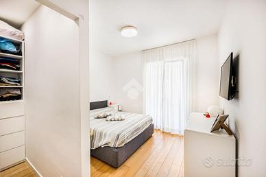 Dall'ingresso si accede direttamente ad un'ampia zona living suddivisa in zona relax, zona pranzo e angolo cottura. Un ambiente pratico e perfetto da vivere ogni giorno, caratterizzato da una buona luminosità e dalla presenza di un balcone. Tramite un disimpegno si accede alla zona notte dove troviamo le due camere da letto, la cabina armadio, il bagno ed un altro balcone.