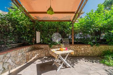 L'immobile è composto da ingresso, soggiorno con angolo cottura, due camere da letto matrimoniali, doppi servizi, ripostiglio e giardino pavimentato di 60 mq.