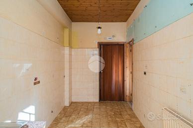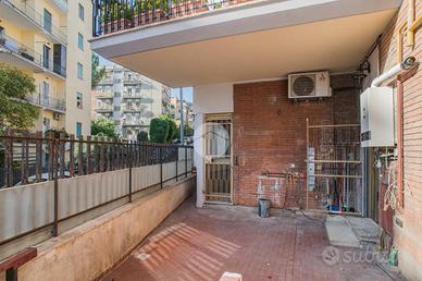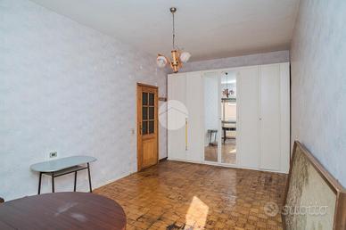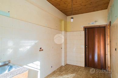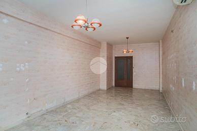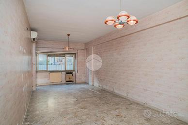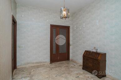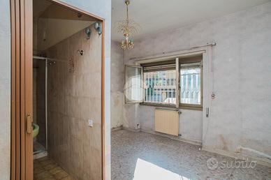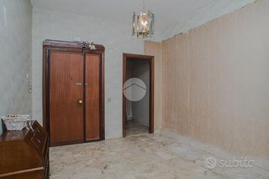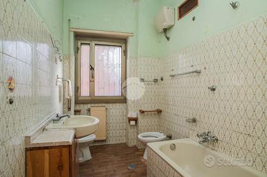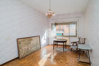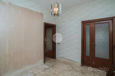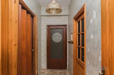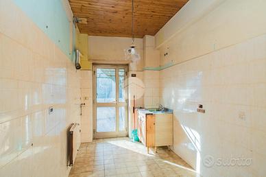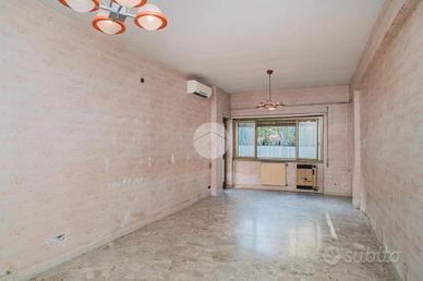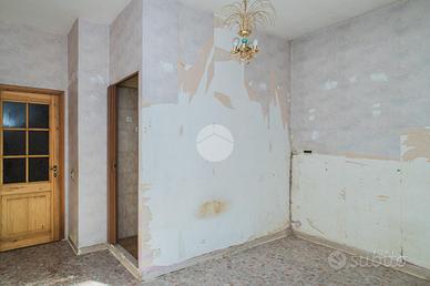 L'appartamento, da ristrutturare, offre una distribuzione spaziosa e funzionale: ampio ingresso, salone doppio, due camere da letto, cucina, due bagni, ripostiglio e un giardino pavimentato di circa 60 mq su due livelli.