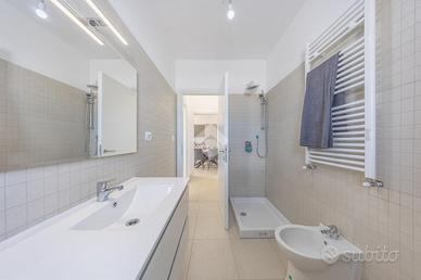 Il bagno finestrato con doccia, elegante e funzionale, garantisce momenti di relax e benessere.