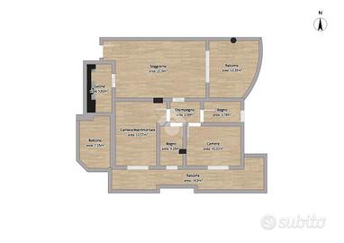 Le due camere da letto, spaziose e ben illuminate, offrono ampi spazi per il riposo e sono adatte a soddisfare ogni esigenza di chi cerca comfort e funzionalità. A servizio dell'appartamento ci sono due bagni finestrati, un dettaglio che garantisce una maggiore luminosità e aerazione, assicurando una sensazione di freschezza in ogni momento della giornata.