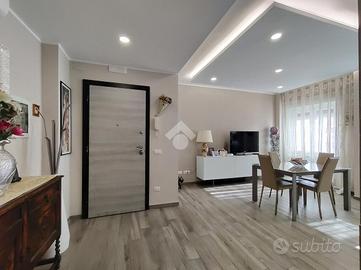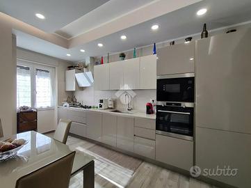 L'appartamento presenta finiture di qualità, tra cui infissi Finstral in PVC, avvolgibili elettrici, zanzariere, tende da sole, pavimentazione in gres porcellanato effetto parquet uniforme in ogni stanza, climatizzatori in tutti gli ambienti, riscaldamento autonomo con caldaia a condensazione, porta blindata, porte interne in legno laccato e controsoffitti con illuminazione a faretti integrati.