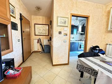 L'ingresso si apre su un ampio e luminoso soggiorno, cuore della casa, ideale per accogliere ospiti o vivere momenti di relax grazie agli spazi ben distribuiti e alla piacevole continuità con l'esterno. Da qui si accede al grande terrazzo, vero valore aggiunto dell'abitazione, perfetto per pranzi all'aperto, cene estive o semplicemente per godersi un angolo di tranquillità all'aria aperta.