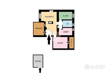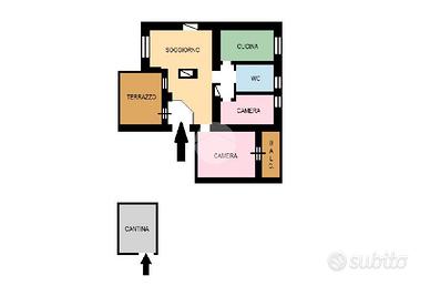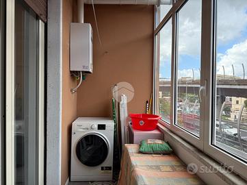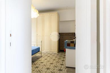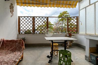 L'immobile, sito al 3° piano di uno stabile dotato di ascensore e servizio di portierato, è così composto: comodo ingresso, soggiorno luminoso con accesso sul caratteristico TERRAZZO, ampia cucina abitabile, camera da letto matrimoniale da cui si accede al balcone, cameretta e servizio finestrato dotato sia di vasca che di doccia; completa la proprietà una funzionale cantina.