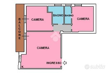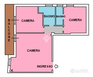 È composto da: ingresso, tre camere (una delle quali con predisposizione per angolo cottura), doppi servizi e balcone.