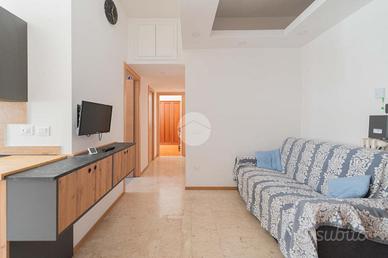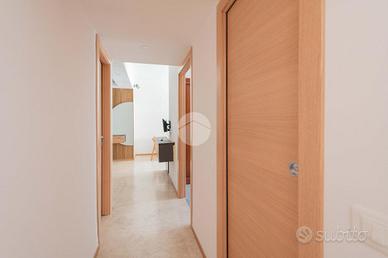 L'appartamento è composto da soggiorno a vista con angolo cottura, camera matrimoniale, cameretta, doppi servizi e ripostiglio.
