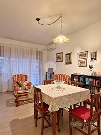 L'immobile si compone di un ampio ingresso che conduce al soggiorno a vista, una cucina abitabile, due camere, doppi servizi e un comodo balcone che si estende dal soggiorno alla camera matrimoniale.