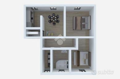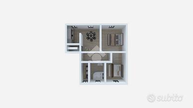L'immobile è composto da ingresso, soggiorno, cucina, due ampie camere matrimoniali. L'immobile ha doppi servizi di cui uno con vasca idromassaggio e uno con doccia, entrambi finestrati.