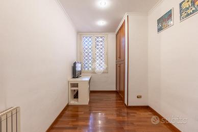 L'appartamento si presenta in buono stato manutentivo e dispone di infissi in alluminio anodizzato con doppio vetro, serrande e grate anti-intrusione, riscaldamento autonomo e porta blindata.