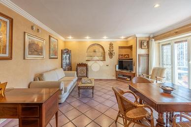 Internamente l'abitazione è composta da ingresso, ampio soggiorno, cucina abitabile, due camere matrimoniali, studio, disimpegno con armadio a muro e due bagni, entrambi finestrati.