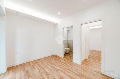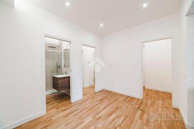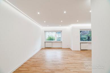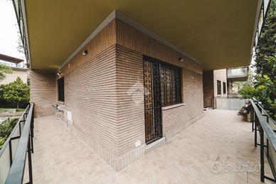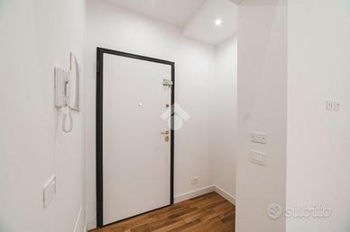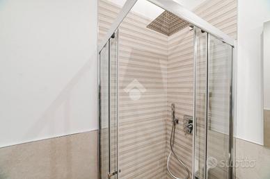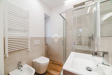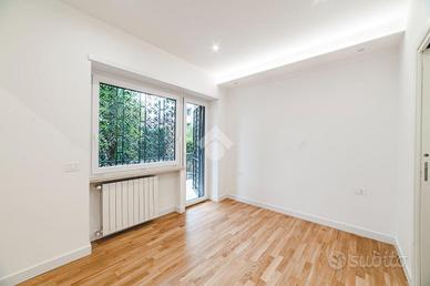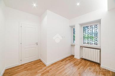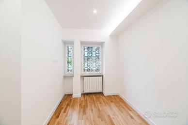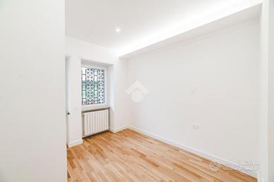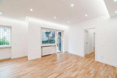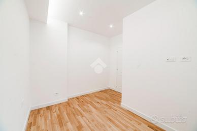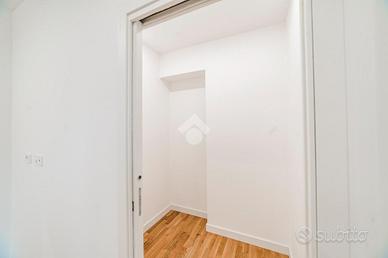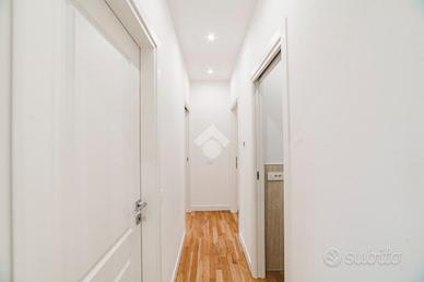L'appartamento si presenta finemente ristrutturato con materiali di pregio. Gli infissi sono in doppio vetro PVC, ad una o più ante battenti, con la realizzazione di avvolgibili elettrici e predisposizione per aria condizionata. La pavimentazione è in parquet.