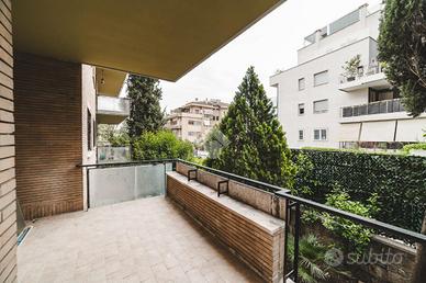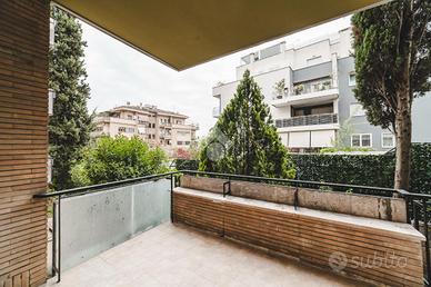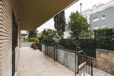 Lo stabile, dotato di servizio di portineria e giardino condominiale, si colloca in un contesto elegante e signorile in una delle aree più tranquille di Roma: Cortina D'Ampezzo è un quartiere che offre il privilegio unico di fare esperienza della Capitale rimanendo però in una delle zone più verdi che la città ha da offrire.