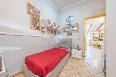 La zona notte comprende una spaziosa camera matrimoniale, anch'essa con accesso diretto al secondo balcone, per un'ulteriore area di relax, una cameretta versatile e un bagno finestrato con vasca.