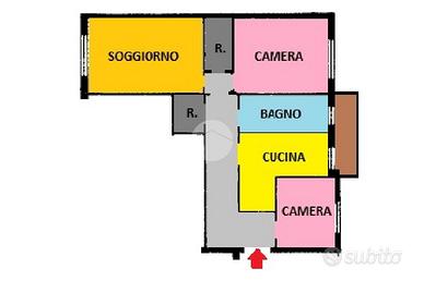 Ingresso, soggiorno, cucina abitabile, 2 camere da letto, bagno finestrato, 2 ripostigli e balcone.