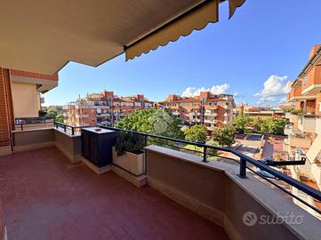 Al terzo e penultimo piano di un elegante contesto condominiale proponiamo un ampio e luminoso appartamento caratterizzato da una doppia esposizione e da due comodi terrazzi. L'ingresso conduce a un grande soggiorno doppio con accesso diretto al primo terrazzo, ideale per momenti di relax all'aperto, e a una cucina separata e abitabile che si affaccia sul secondo terrazzo condiviso con una delle camere da letto. La zona notte comprende due camere da letto, un bagno finestrato con vasca e un secondo bagno finestrato con doccia. L'ottima distribuzione degli spazi e la doppia esposizione garantiscono luminosità e ariosità in tutti gli ambienti.