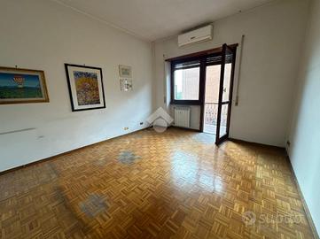 Vigna Pia Portuense - Via Nicola Pellati. Situato al secondo piano di una palazzina di cinque, questo appartamento offre spazi generosi e un grande potenziale di personalizzazione. L'immobile si trova all'interno di un comprensorio elegante e ben tenuto, caratterizzato da un ingresso curato e signorile, che trasmette subito un senso di ordine e accoglienza. L'appartamento, esposto a sud-est, gode di una luminosità naturale eccezionale durante tutto l'arco della giornata. Il cuore della casa è l'ampio salone, un ambiente arioso e versatile, ideale per creare una grande zona living con area relax e pranzo, impreziosita da ampie finestre e accesso diretto a uno dei due balconi. La luce che filtra in ogni momento della giornata rende questo spazio particolarmente accogliente e valorizza ogni dettaglio architettonico. La cucina è separata, funzionale e di dimensioni generose, con possibilità di essere riorganizzata secondo le esigenze moderne. La zona notte comprende due camere da letto spaziose, perfette sia come matrimoniali che come camere per bambini o studio, e due bagni, entrambi finestrati. Completano la proprietà due balconi vivibili, che affacciano sul verde del comprensorio, offrendo momenti di relax e privacy.Grazie alla disposizione interna razionale, ai volumi ampi e alla luce naturale abbondante, questa casa rappresenta la soluzione ideale per chi desidera un appartamento da ristrutturare a proprio gusto, in un contesto residenziale piacevole e curato. Le presenti informazioni e planimetrie sono meramente indicative e non costituiscono elementi contrattuali.